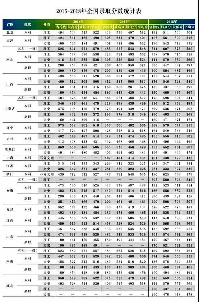 兰州交通大学2016-2018年全国录取分数统计