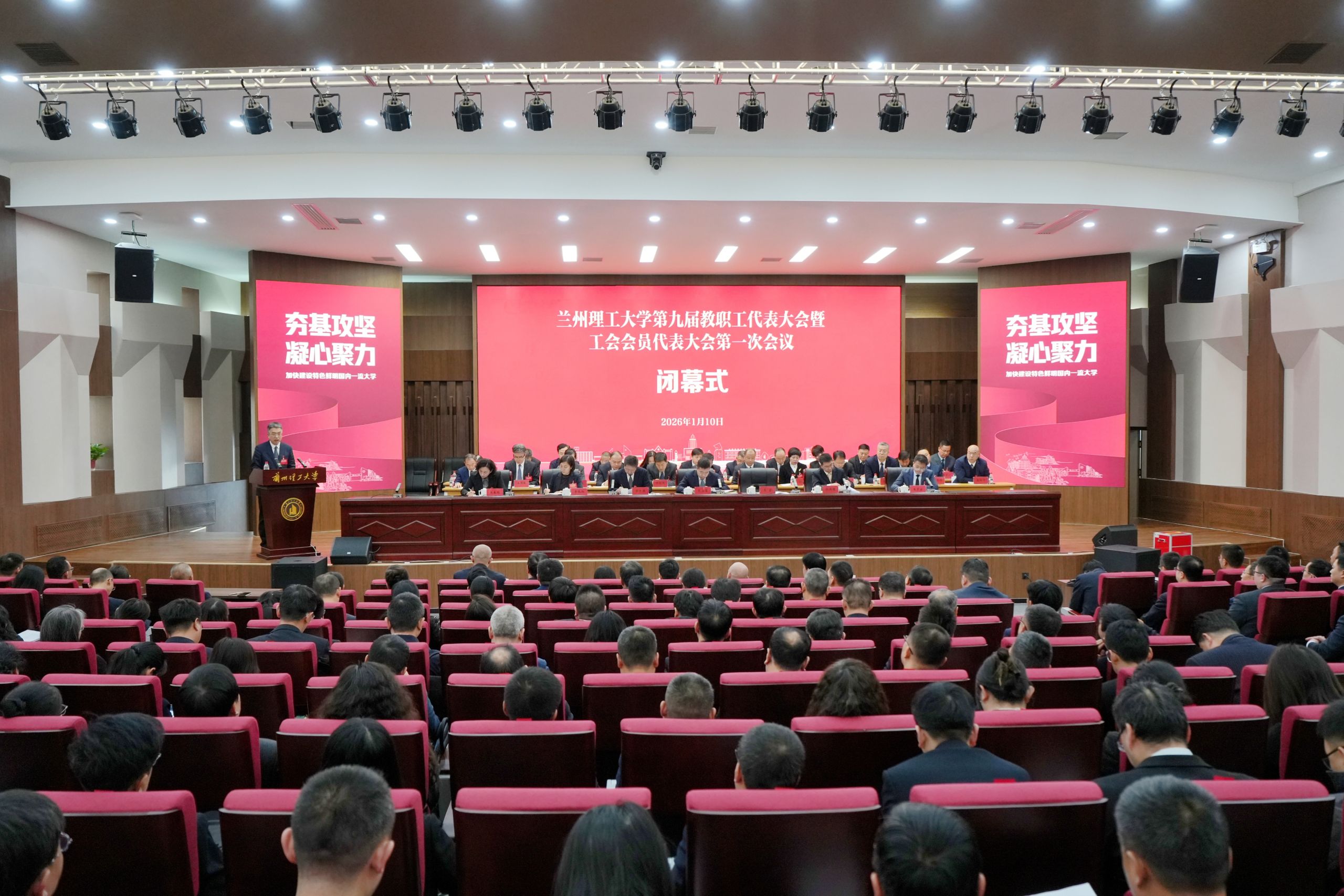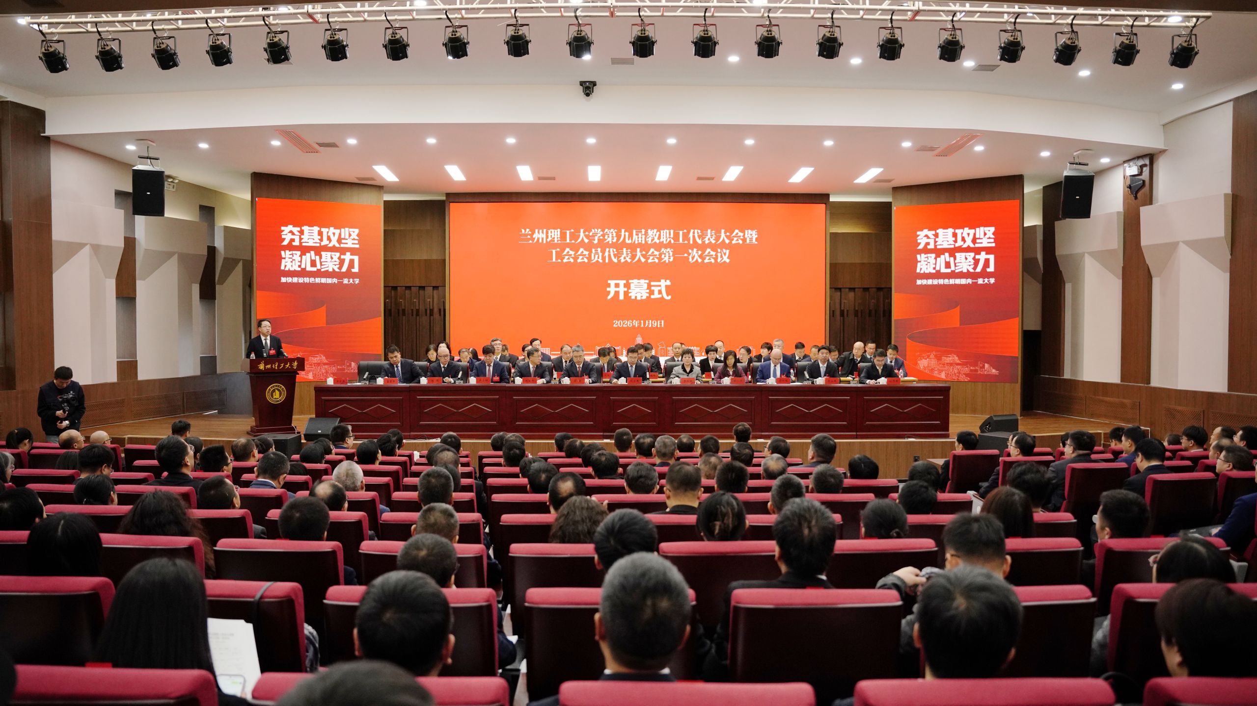 1月9日下午,雷竞技qg第九届教职工代表大会暨工会会员代表大会第一次会议在兰工坪校区学术交流中心二楼报告厅开幕。全体校领导、教职工代表、列席代表、特邀代表等近300人齐聚一堂,共商学校发展,共绘特色鲜明国内一流大学建设新蓝图。开幕式由党委常委、副校长吕文英主持。