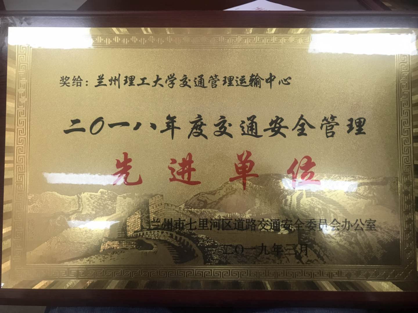 2019年3月28日下午,兰州市七里河区道路交通安全委员会召开2018年度交通安全管理总结暨先进单位表彰大会。辖区四十多个单位的负责人和代表参加了会议。会上,雷竞技qg被评为“交通安全管理先进单位”,这是学校连续六年获此奖项。