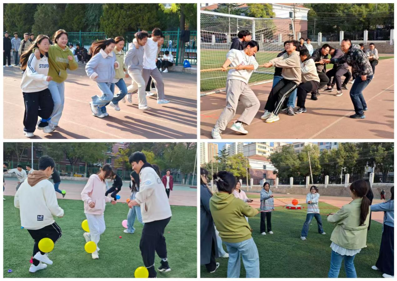 活动现场秩序井然,充满活力,各项目依次开展、亮点纷呈。拔河比赛中,各队队员攥紧绳子拧成一股劲,拼力后拉,场边加油助威声此起彼伏,持续点燃现场气氛;同心鼓项目里,队员分工明确,有人指挥节奏、有人调整拉力,在反复尝试中让皮球上下跳跃;跳绳比赛中,新生们各显身手突破极限,赢得全场热烈喝彩;袋鼠跳环节,大家蹦跳前行、互帮互助,即便摔倒也迅速起身,尽显青春韧劲;多人多足项目中,队员绑紧脚踝,喊着“一二一”口号稳步向前,步伐间满是团队默契。