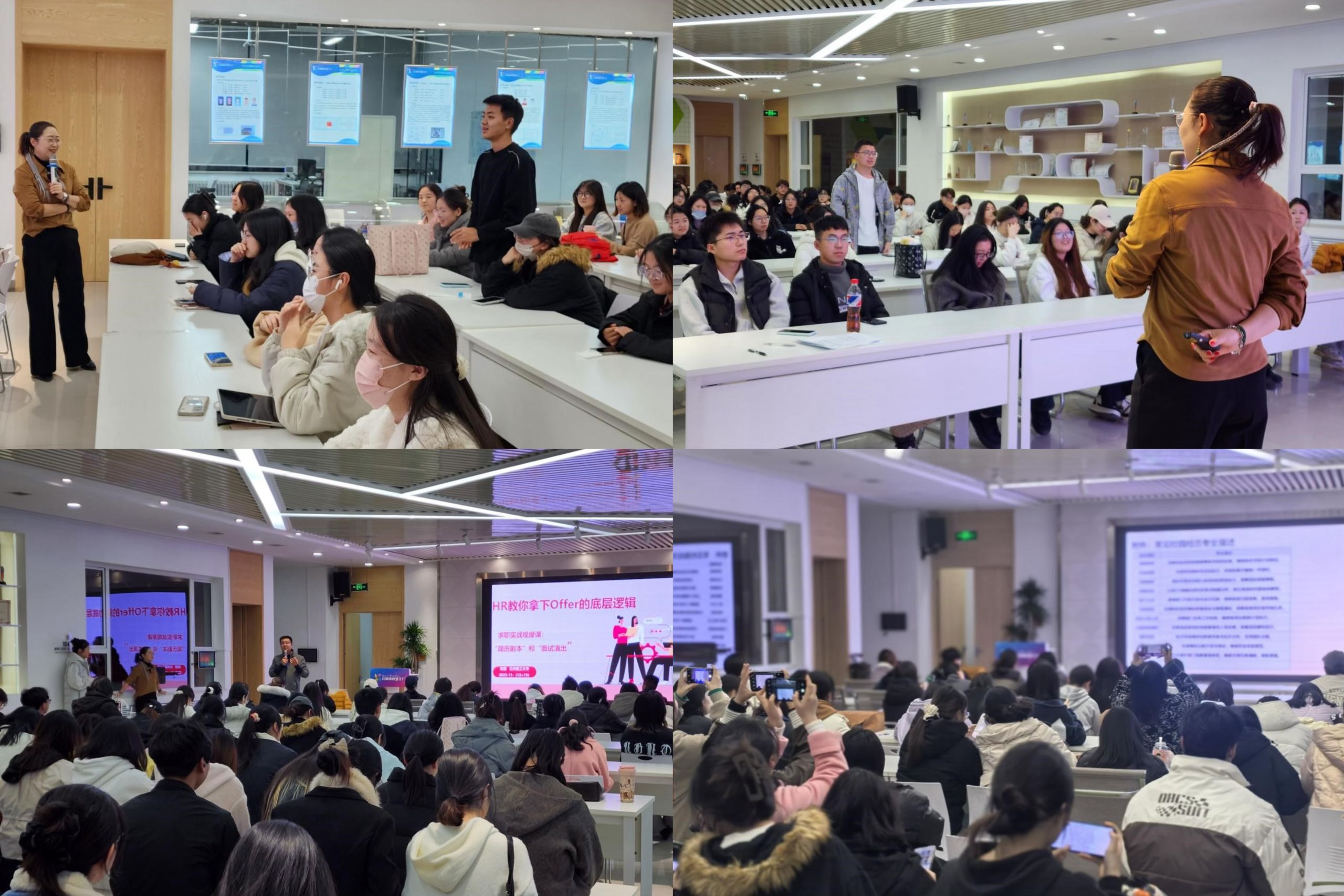 针对前期调研中发现的学生简历“同质化严重、亮点不突出”和面试“应答无逻辑、匹配度不足”等共性问题,学院精准对接求职核心环节,量身定制培训内容,邀请专业导师带来“简历诊断及黄金简历打造”与“HR教你去面试——一场颠覆你面试认知的实战训练”两大专题课程。