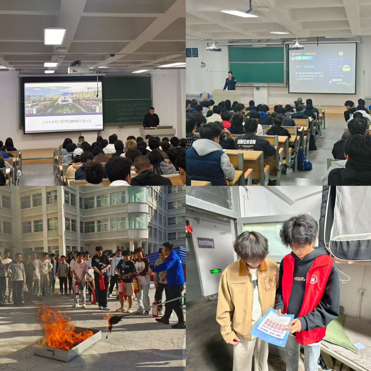 强化“规范”,筑牢成长底线。学院将制度教育与安全教育贯穿始终。在制度规范方面,辅导员开展年级大会解读学籍管理、考勤考核、奖助学金评定、学术不端处理办法等核心制度,明确大学学习生活的“红线”与“底线”;在安全教育方面,以主题讲座和实操演练等方式,开展宿舍用电安全、消防安全、财产安全和人身安全教育,强化学生的安全防范意识与自我保护能力;详解校园公共设施使用规范、学生行为准则、“两禁一允许”等内容,引导新生树立规则意识,养成健康生活习惯。