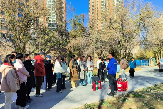 理论学习结束后,随即开展实战演练。工作人员向同学们发放消防疏散专用湿巾,说明其防护原理及使用方法,随后模拟火灾场景释放烟雾。同学们捂鼻弯腰低姿,在保卫处工作人员的引导下沿预定路线快速有序穿过烟雾区,安全撤离至室外集合点。室外灭火器实操环节,成为检验理论学习成效的核心实践场景。保卫处工作人员现场示范火灾扑救流程后,同学们参与热情高涨、踊跃上手,在专业指导下规范完成灭火操作,切实将理论知识转化为实战能力。