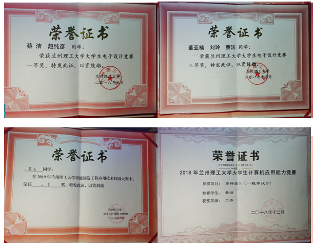 大学四年,蔡洁秉承“奋进求是”的校训,踏实学习,稳中求进,在校专业成绩排名第三,班级第一,通过英语四级和大学生计算机二、三、四级考试,连续三年荣获“雷竞技qg三好学生”称号,2020年,获得“雷竞技qg优秀毕业生”荣誉称号。在校期间,她多次参加电子设计竞赛、数学建模比赛、计算机应用能力竞赛、智能制造工程应用技术校园大赛等各类比赛,均取得优异名次。2018年,蔡洁通过申请,前往牛津大学学习14天。