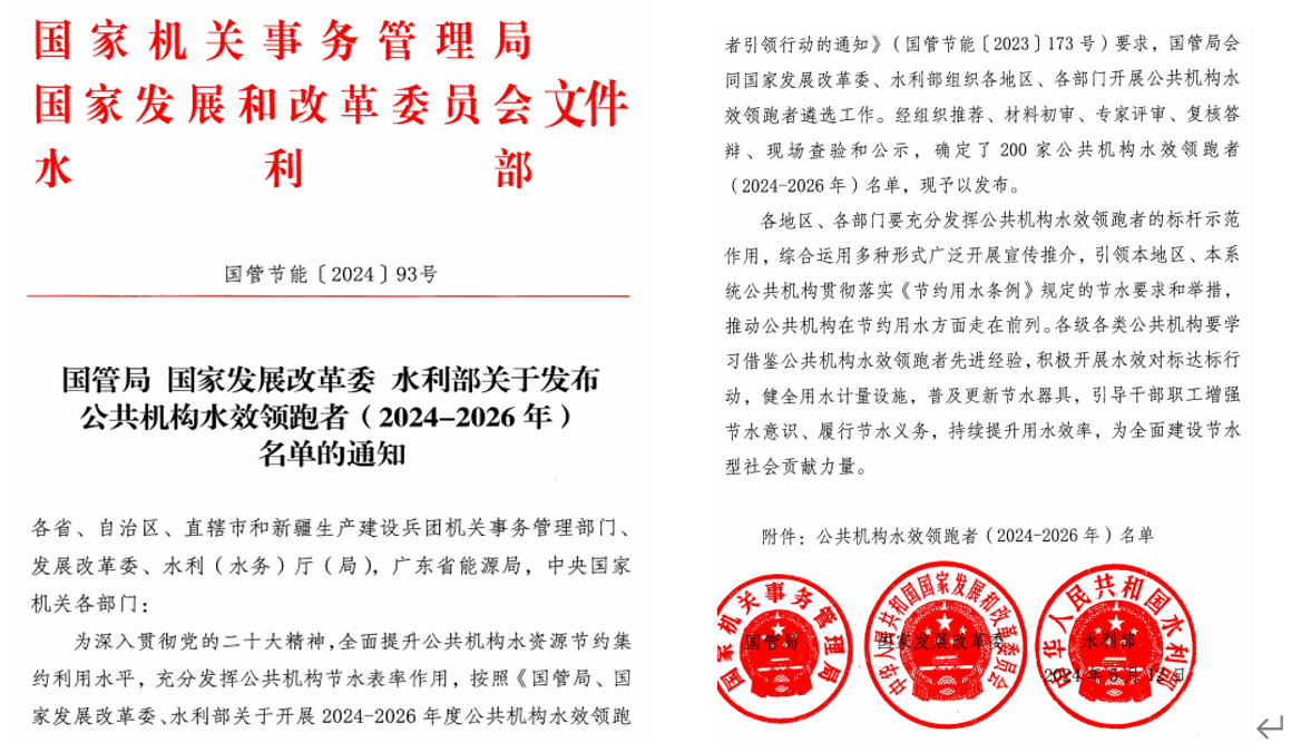 获评全国“水效领跑者”荣誉称号,是我校节水工作的一个新起点。我们将以此为契机,积极推进学校水资源科学管理和节水技术推广使用,进一步提高全民节水意识,为学校教学、科研和师生提供更优质的能源服务保障。(撰稿:王鹏举 审核:陈永泰)