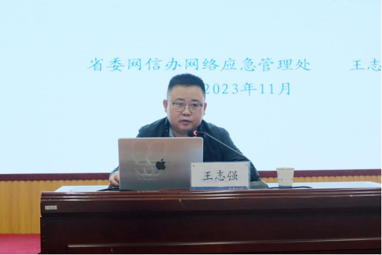 王志强作了题为《网络舆情风险防范与应对处置》的报告,从网络舆情发展历程、重大意义、风险隐患、应对处置四个方面作了深刻细致的讲解和分析。