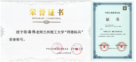 师德标兵证书、制药工程专业认定证书